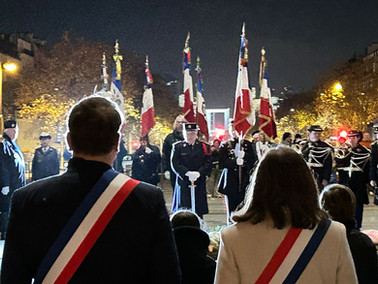 Aux côtés de Geoffroy Boulard, Maire du 17e, Brigitte Kuster, Christophe Ledran, et Michel Terrioux, pour une belle et émouvante cérémonie de ravivage de la flamme du Soldat inconnu ce jeudi 4 décembre à l'Arc de Triomphe.